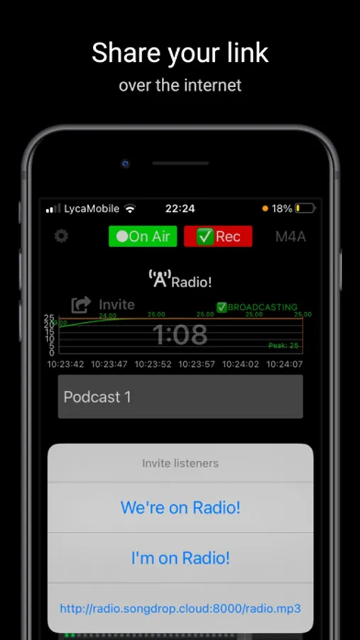 With our app, you can easily broadcast from your iPhone to your own radio station.