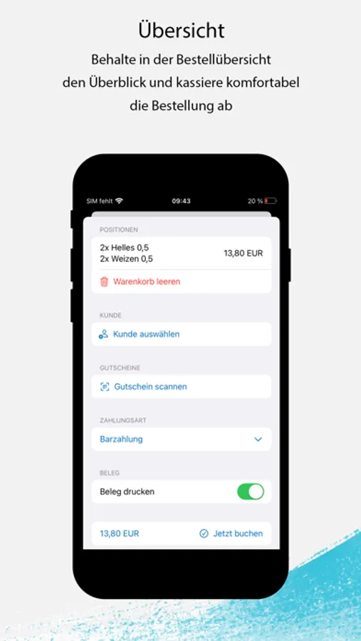Umfassendes Kassen- und Gastrosystem für den mobilen Verkauf und Bewirtung. Es erleichtert dir Deine Verkäufe abzuwickeln und ist intuitiv selbsterklärend.