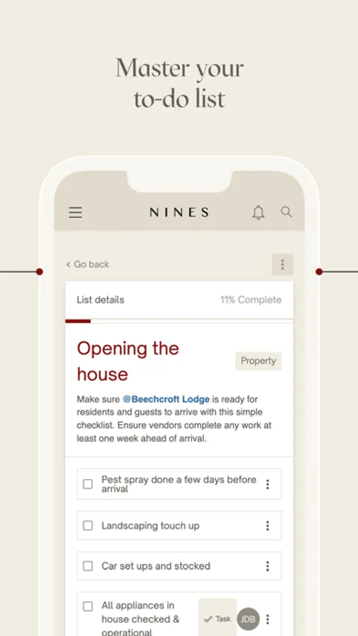Whether you're moving, welcoming guests, or managing the everyday chaos of modern home life, nines helps you ensure everyones on the same page and everything's running smoothly so you can get back to doing whatever you love most.