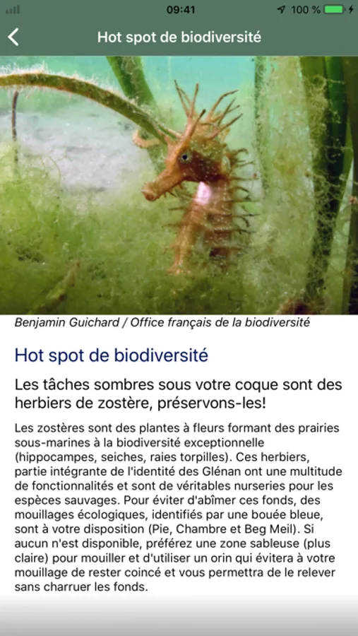 - Secteurs d’herbiers et informations sur la biodiversité marine.