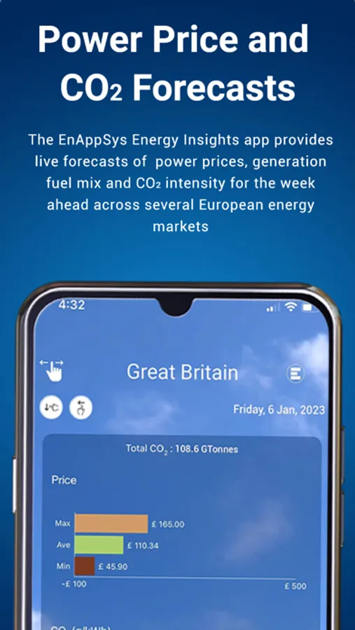 The EnAppSys Energy Insights app provides live forecasts of power prices, generation fuel mix and CO2 intensity for the week ahead across several European energy markets.