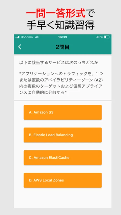 AWS Certified Cloud Practitioner(クラウドプラクティショナー)認定試験の一問一答形式の問題集アプリです。