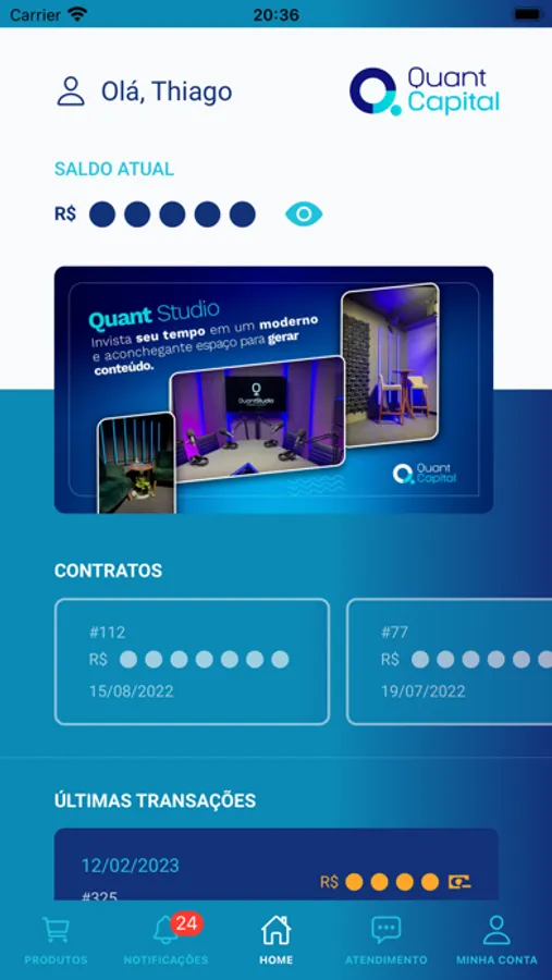 Aplicativo para acompanhar os investimentos na Quant Capital