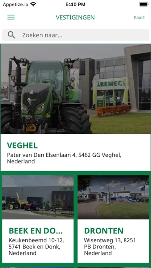 Abemec is een gespecialiseerd landbouwmechanisatiebedrijf voor Nederland met 23 vestigingen. Met de Abemec app blijf je op de hoogte van nieuws en evenementen, ontvang je als eerste aantrekkelijke aanbiedingen, heb je altijd een actueel overzicht van occassions en maak je snel een afspraak met één van onze specialisten.
