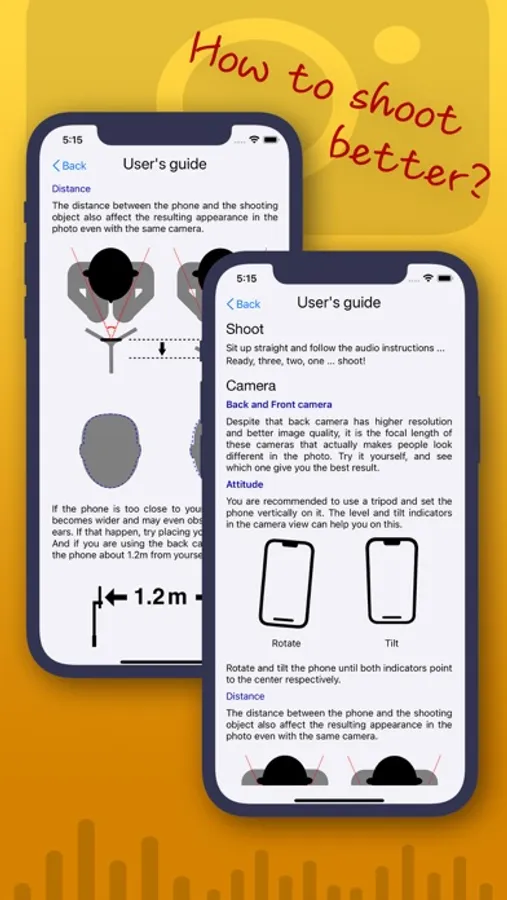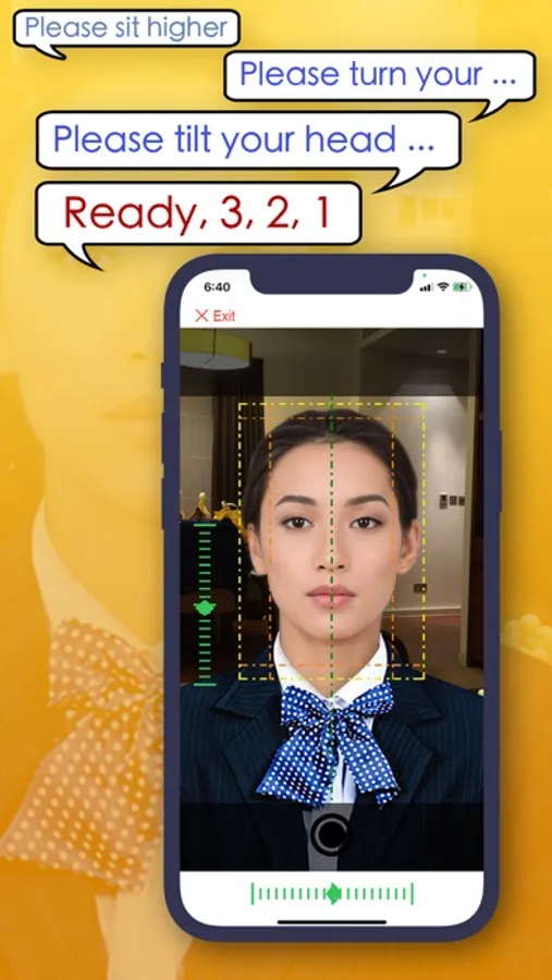 'SelfID Photo' helps to solve these problems. First of all, the level and tilt indicators in the camera assists you setting the phone in a proper attitude, no matter you are using a tripod or holding it by hand. Secondly, 'SelfID Photo' uses A.I. to locate your face and provides audio guidance (currently, English, Chinese Mandarin and Chinese Cantonese) to let you position yourself. And when you are in the right position, stay steady, the APP will take the picture automatically for you. That means, if you are using the back camera for selfie, you are still be able to 'locate' yourself and take a nice ID photo without even touching the shutter.
