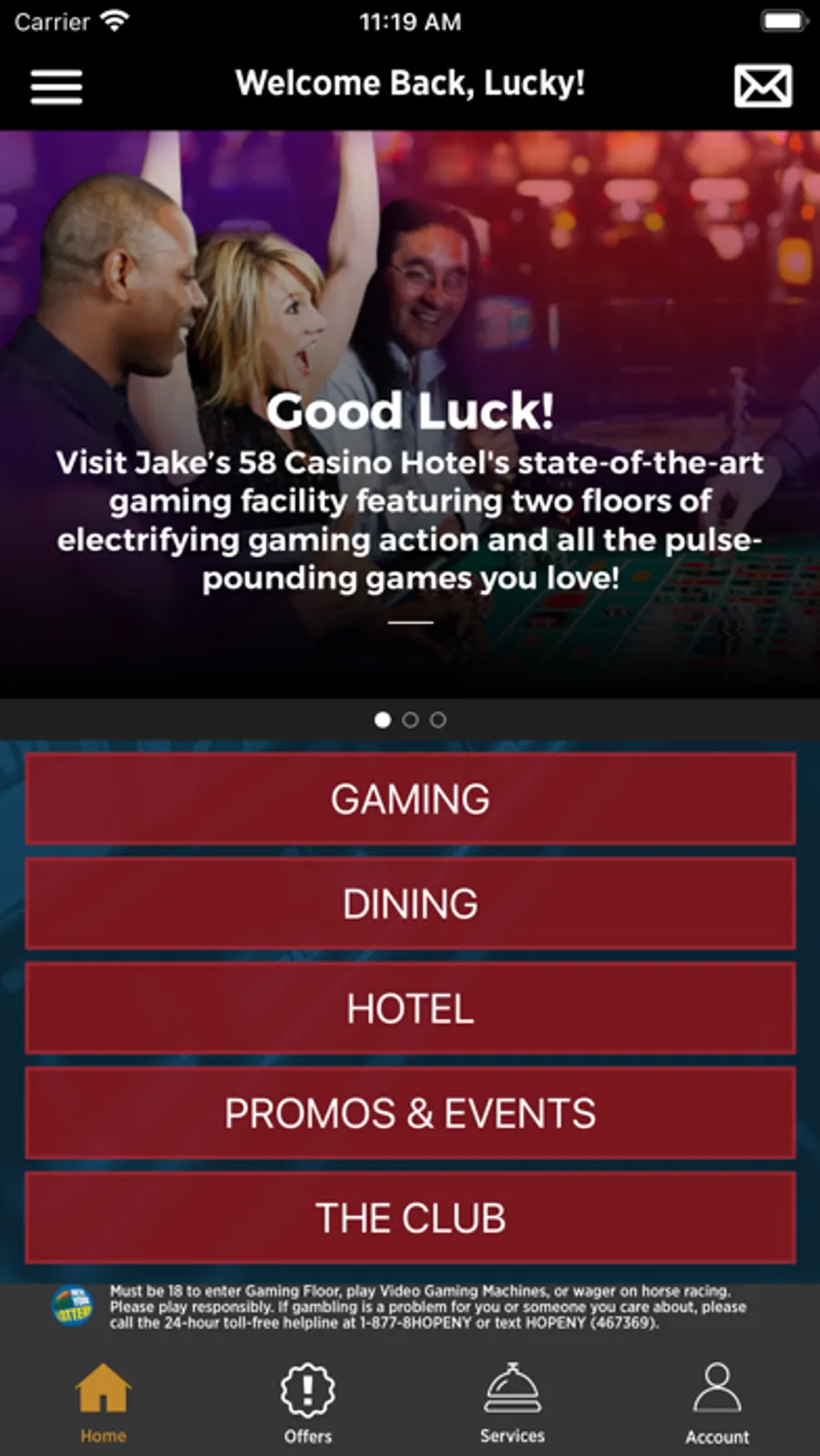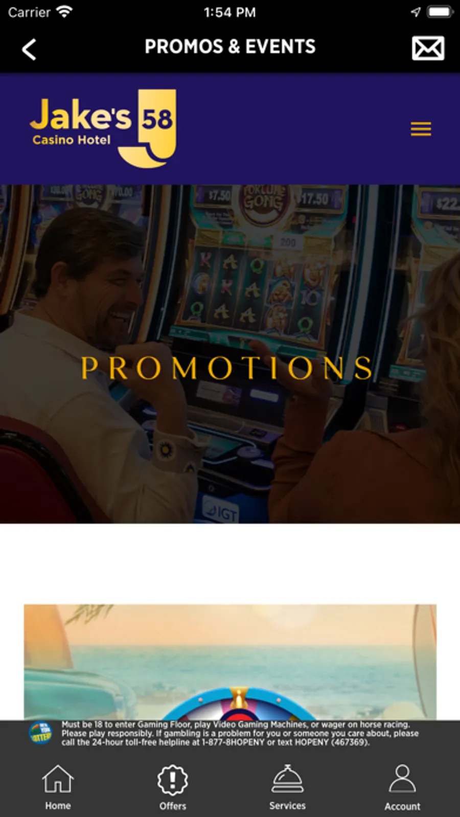Jake’s 58 features 1,000 video lottery terminal (VLT) gaming machines, including electronic table game favorites Blackjack, Craps, Roulette, Baccarat and Three Card Poker, thanks to the Interblock Stadium. Player’s Club is the casino’s loyalty program and is available to guests at no charge. Player’s Club Members earn free play rewards, hotel stays, special offers & more based on individual play. Jake’s 58 also houses four Off-Track Betting kiosks with racing simulcast monitors.