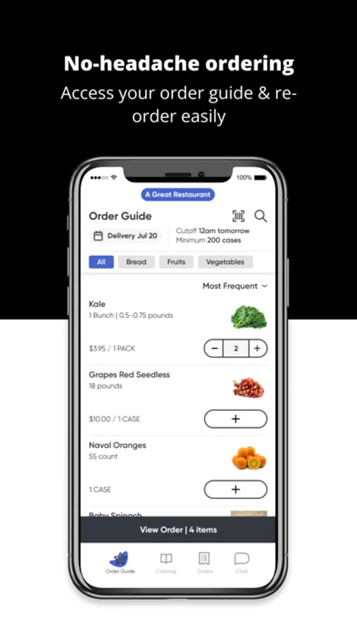 Our mobile app lets you search our complete product catalog, manage and update your ordering guide, and buy what you need at the moment you need it. It’s part of our commitment to giving you an ordering experience you’ll love.