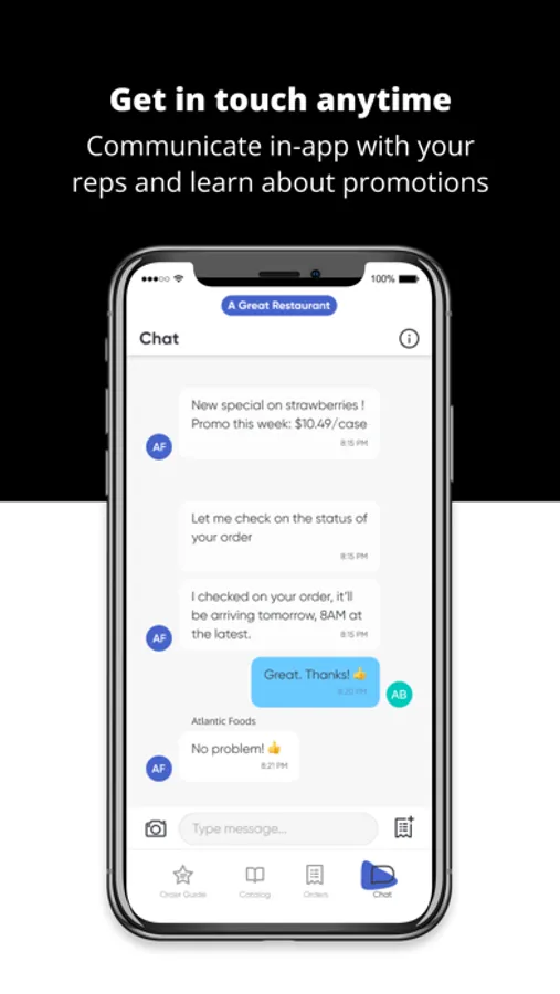 - Get in touch anytime: communicate directly with your Atlantic Foods rep in the app