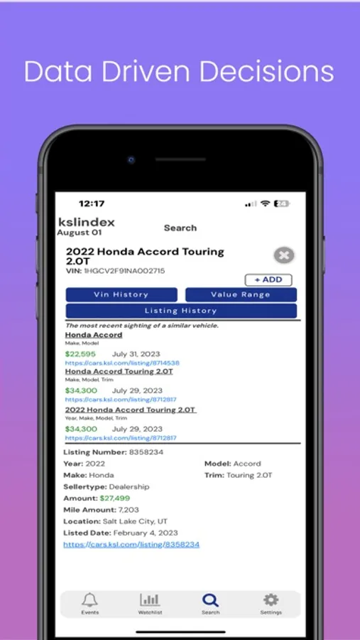 For vehicle enthusiasts, kslindex takes it a step further. Our app provides comprehensive vehicle data analysis, including historical pricing, specifications, and market trends. Whether buying or selling a car, you'll have the essential information to negotiate with confidence.