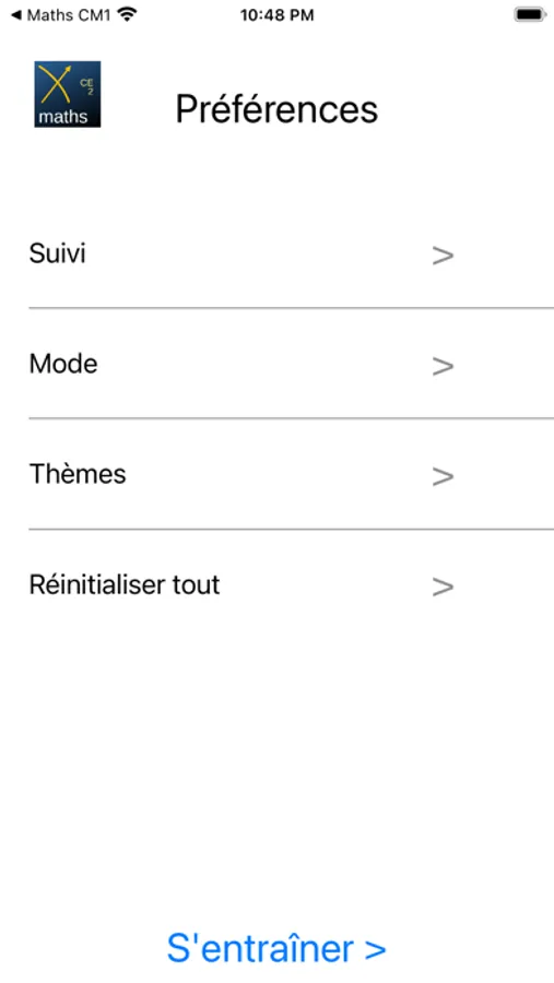 Simple d'utilisation pour l'enfant, l'application propose des exercices par thème et par niveau puis affiche la correction.