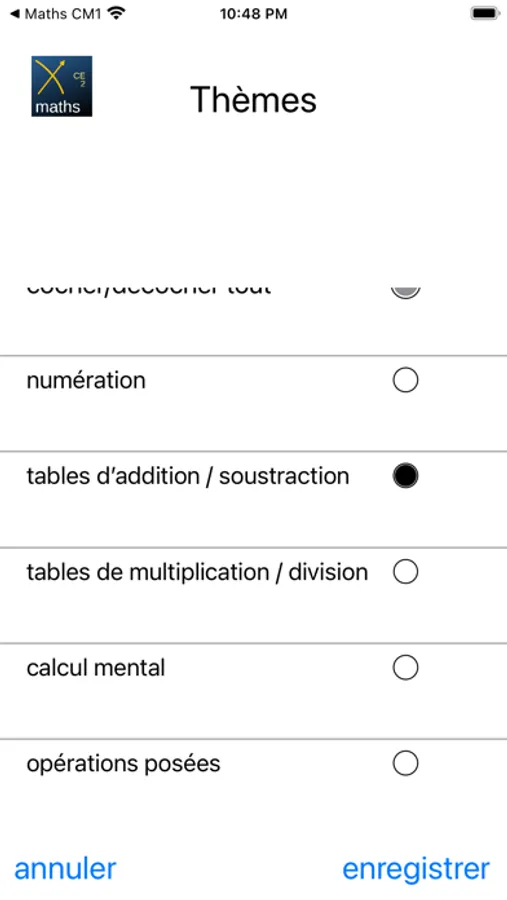 Dans les paramètres il est possible de choisir le niveau et les thèmes à réviser.