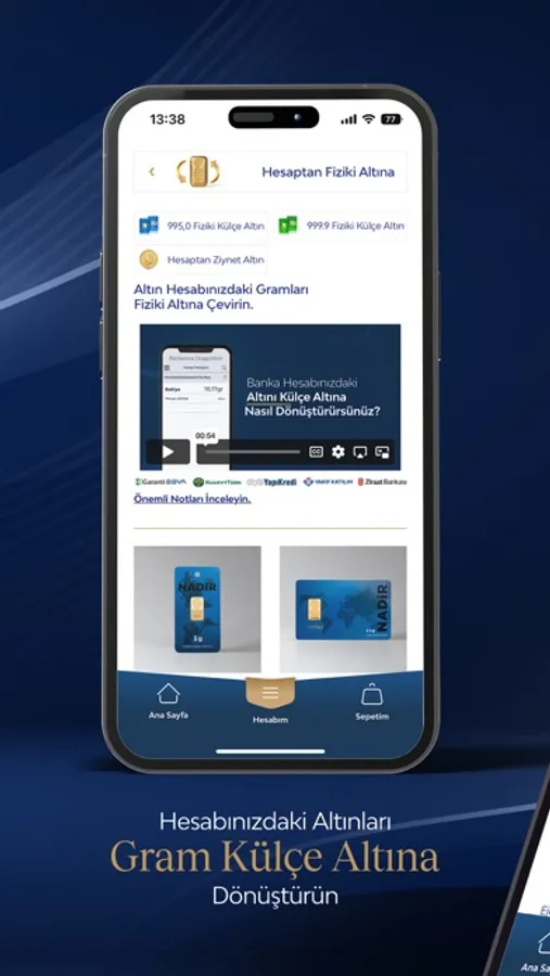 - ''Hesaptan Fiziki Altına'' kategorisi ile banka hesaplarındaki kaydı altınlarını fiziki altına dönüştürme hizmeti de sunmaktadır. (Belirtilen bankalar aracılığı ile)