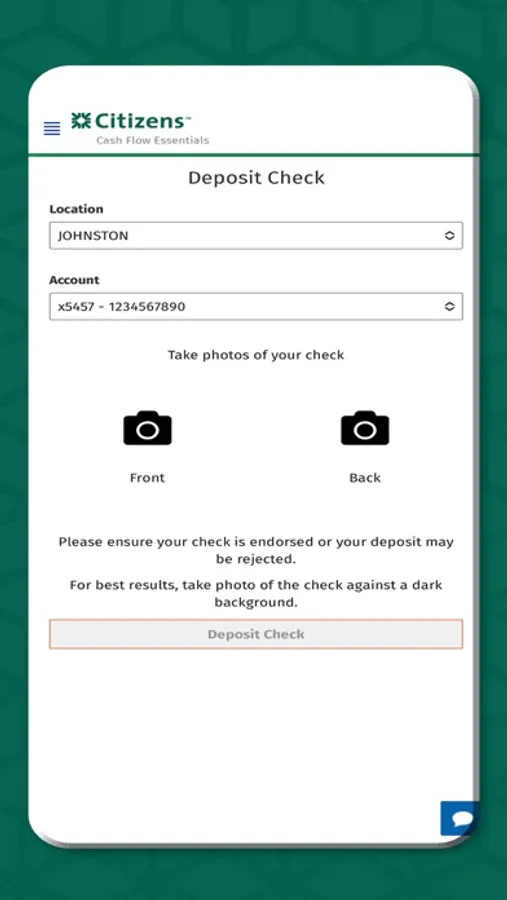 Services offered through Citizens Cash Flow Essentials™ may consist of, but are not limited to, the following: real-time payments, domestic ACH credit payments, wire origination, Citizens business loan payments and draws, unlimited mobile check deposits, stop payments, internal account transfers, bill pay, and reporting.