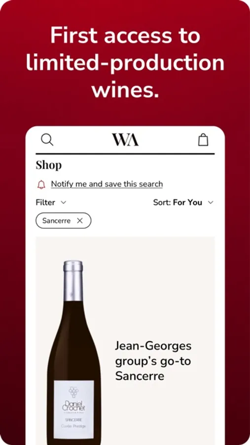 + Set up customized alerts by region, winery, and vintage so that you can be first in line when new limited-production wines arrive.