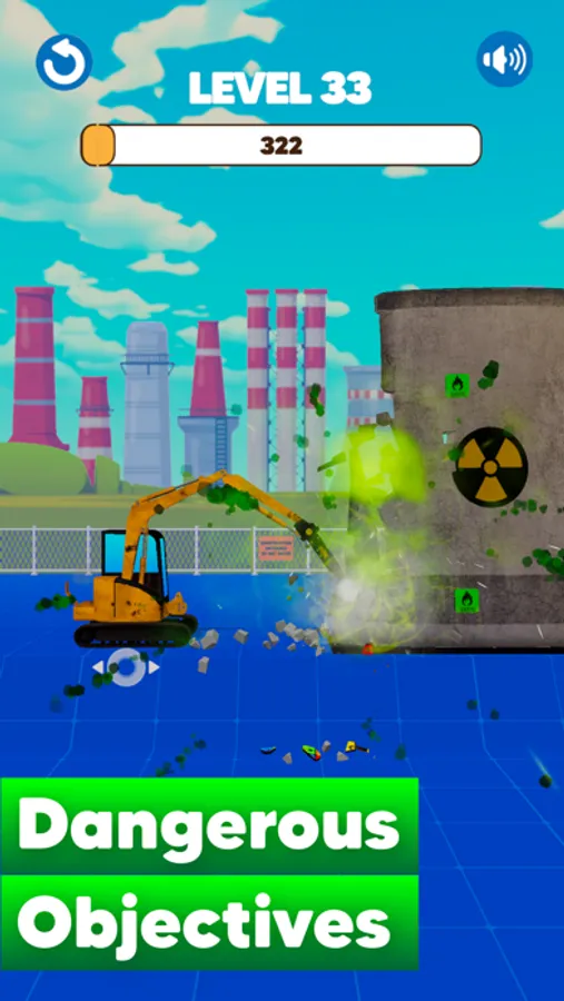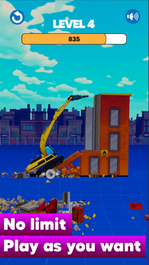 This game has been made to be a realistic excavator simulation. Find the best spot to demolish the buildings without damaging the excavator.