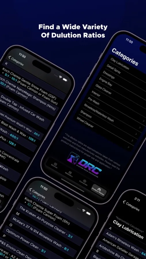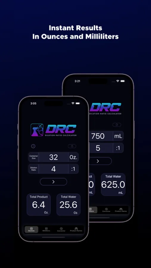 A simple to use app to help calculate any dilution ratio. The Dilution Ratio Calculator (DRC) app is specifically designed for automotive detailing. It will tell you how much water and product you need to get your desired dilution ratio. Simply enter your container size and dilution ratio to get accurate instant results in either Ounces or Milliliters.