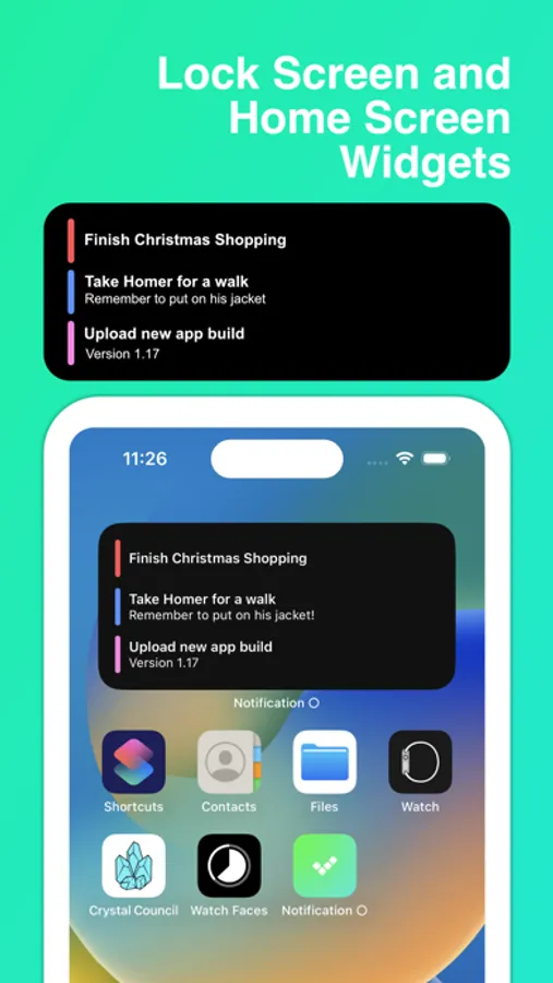 • Never forget anything with Lock Screen and Home Screen Widgets