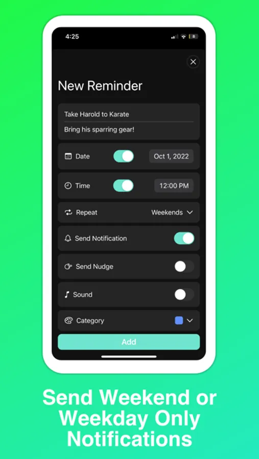• Schedule reminders for weekdays or weekends only