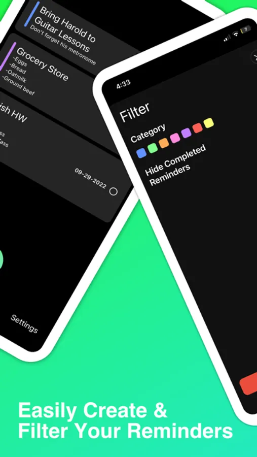 • Easily filter your reminders to stay organized