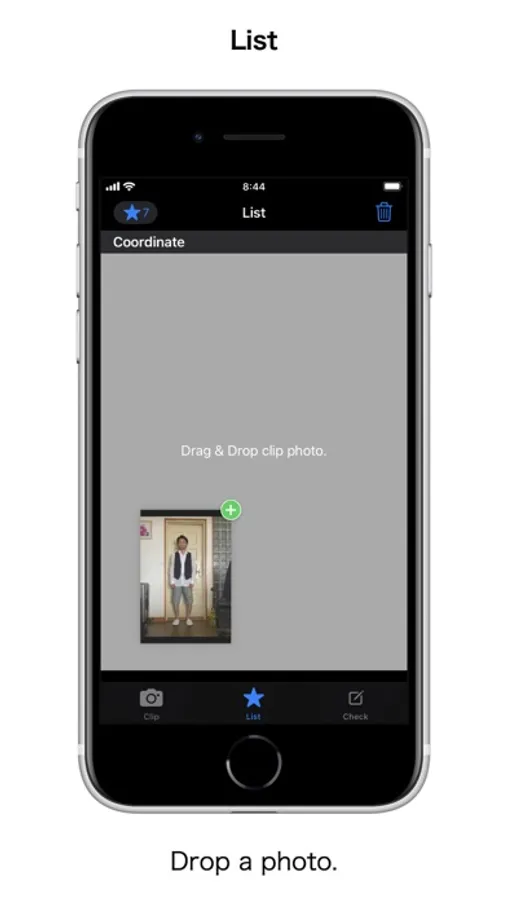 Upload your photo to Clip page and Drag&Drop clip photo to List page.