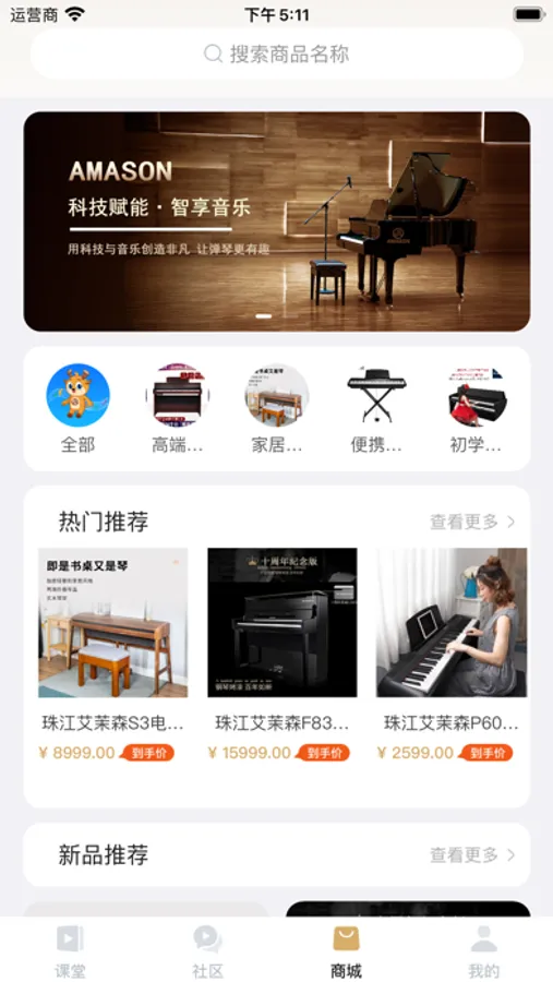 【特色小键盘】基于物联网(IOT)解决方案,在5G功能支持下,开拓出全新的练琴应用场景,摒弃传统只能在家/在琴行练琴的用户习惯,只需打开都弹智能陪练app接入AMASON智能小键盘,随时随地就可以练琴,充分利用空余时间。