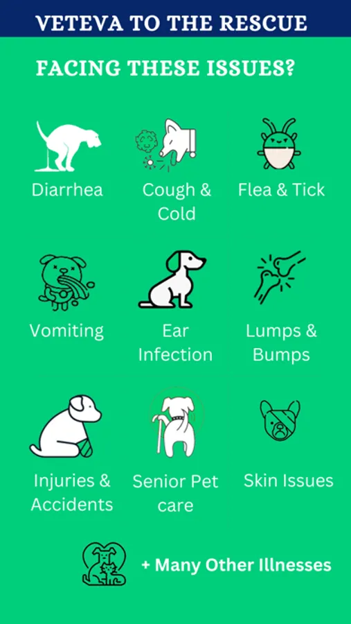 For severe injuries, critical medical emergencies, VETEVA is committed to provide you instant medical support until you are able to seek help from a vet near you, in person. We recommend face to face consultation for such situations.