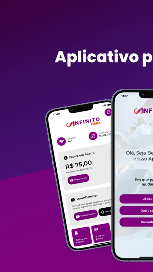 Visando facilitar as relações com seus clientes, Infinito Fibra conecta-se a você através do novo APP. Agora você pode contar com mais essa facilidade prática e segura, de qualquer lugar e a qualquer hora.