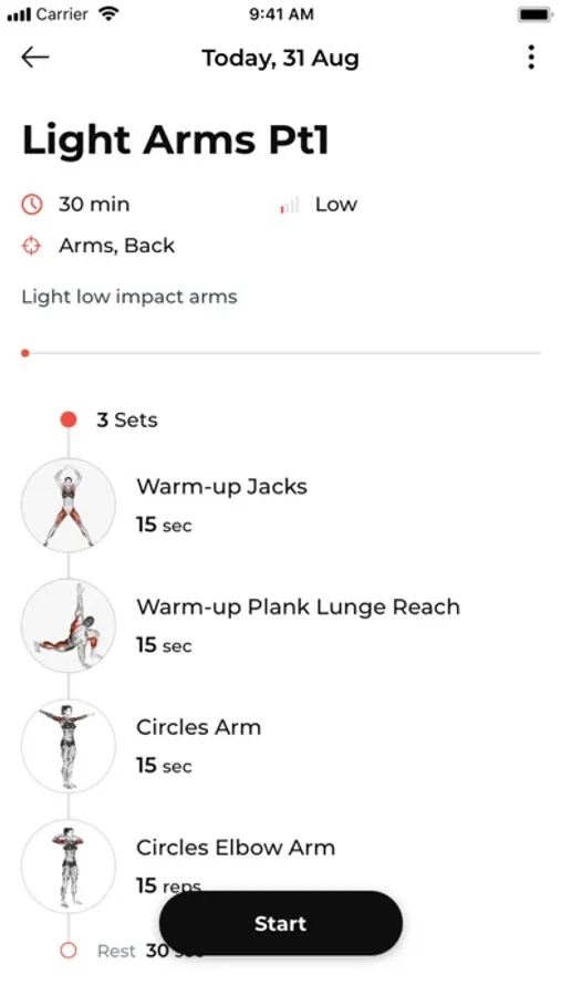 App also uses Apple Health to track energy burned and heart rate during a workout session, if an Apple Watch is used.