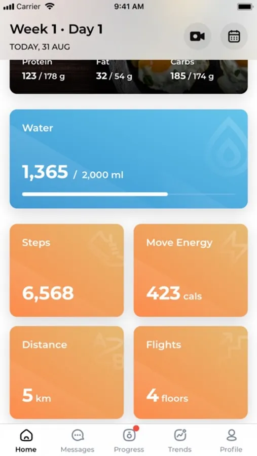 The app integrates with Apple Health to show your daily activity - distance, steps, active energy, and flights to help you better achieve your goals.