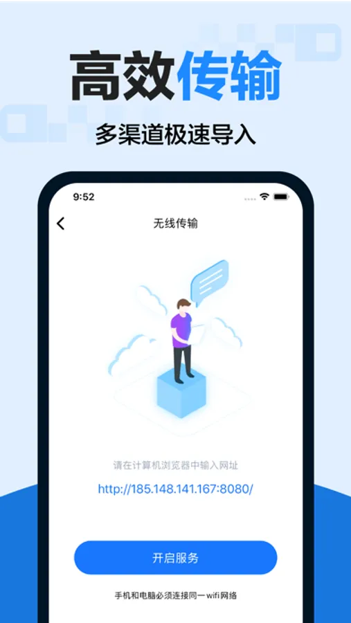 - 多端互传:支持Wi-Fi传输、本地导入等。