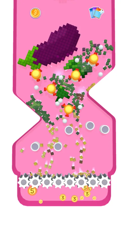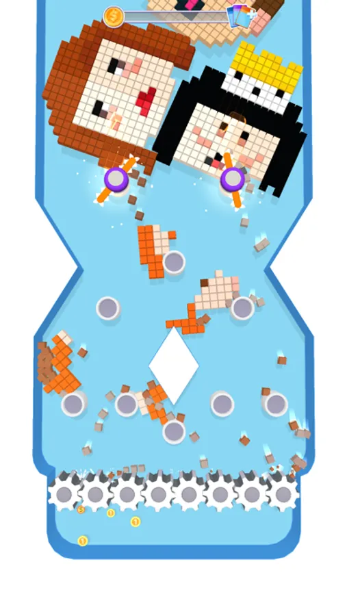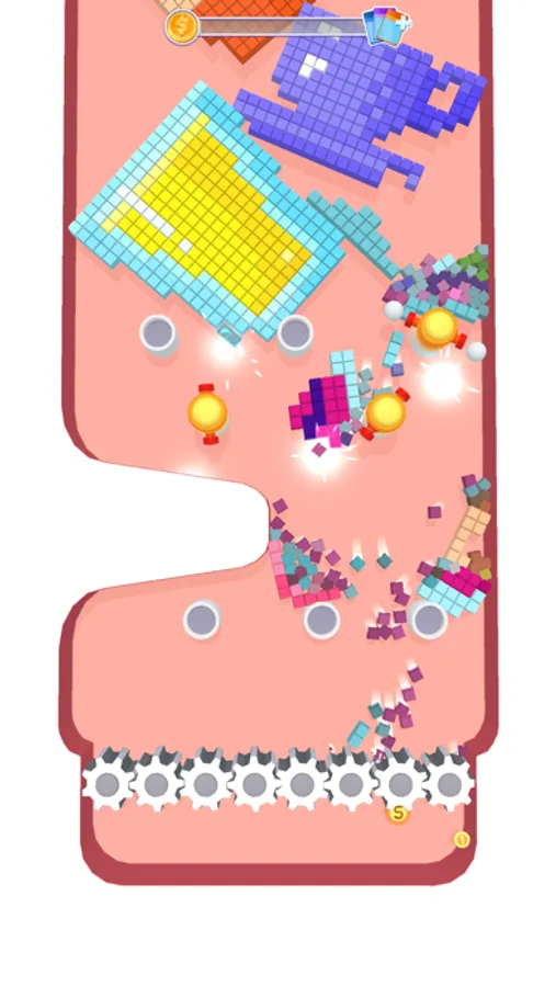Place your towers and tap on the falling blocks to demolish them. Grind all the falling pixels and collect gold coins to upgrade your towers and win.