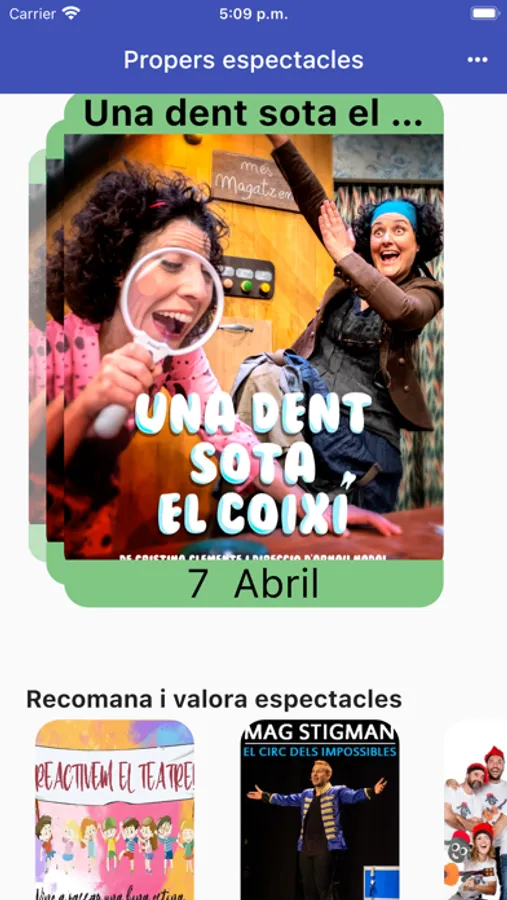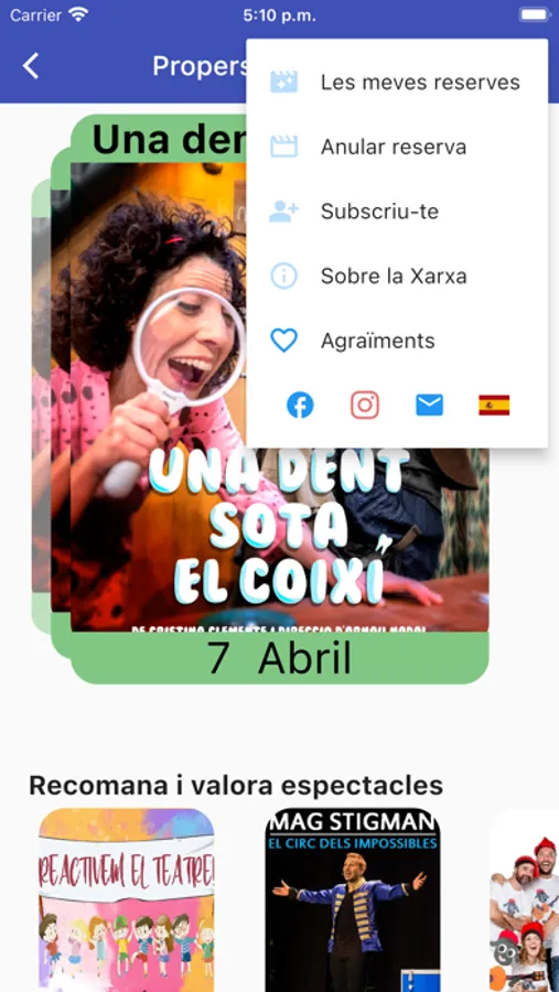 També es poden gestionar les reserves, recomanar i fer valoracions sobre espectacles, i subscriure's.