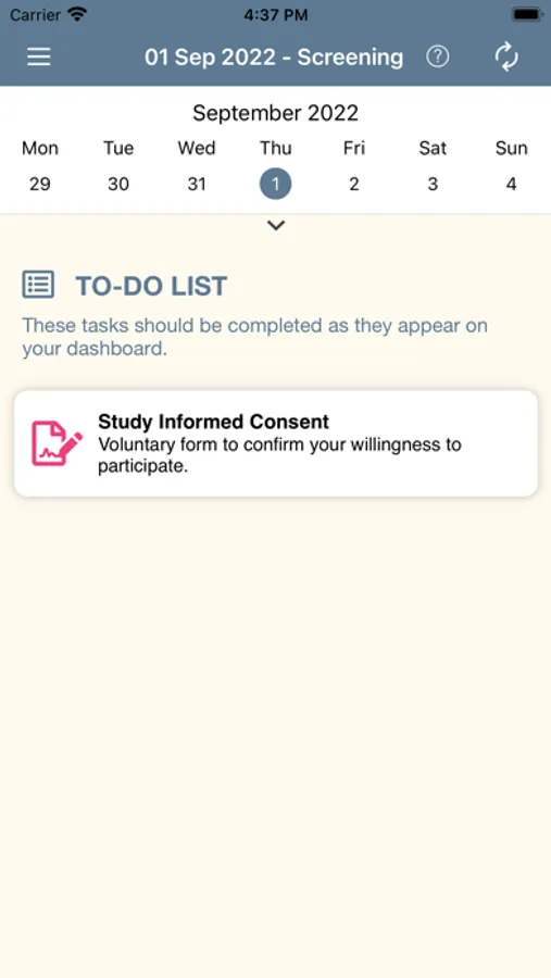 Upon download, the participants create a Jovie account and complete the Informed Consent process. A series of screens explains the parameters of the study, including: