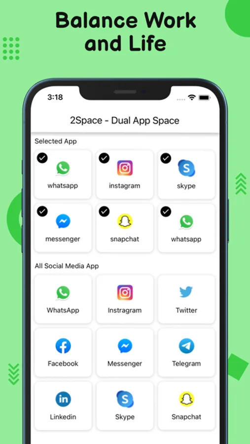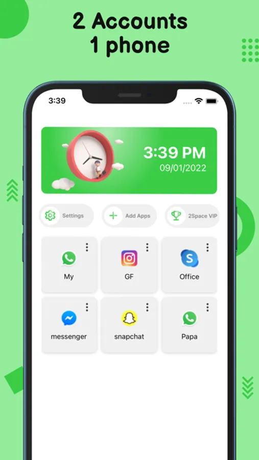 As an app cloner app for iPhone, 2Space can help you easily log in to multiple accounts on one device at the same time. 2Space will provide you with a parallel space where you can clone apps and log into multiple accounts of the same app, such as cloning whatsapp and more social apps, game apps. In addition, users can customize the name of any cloned application, view the running status of the cloned application.
