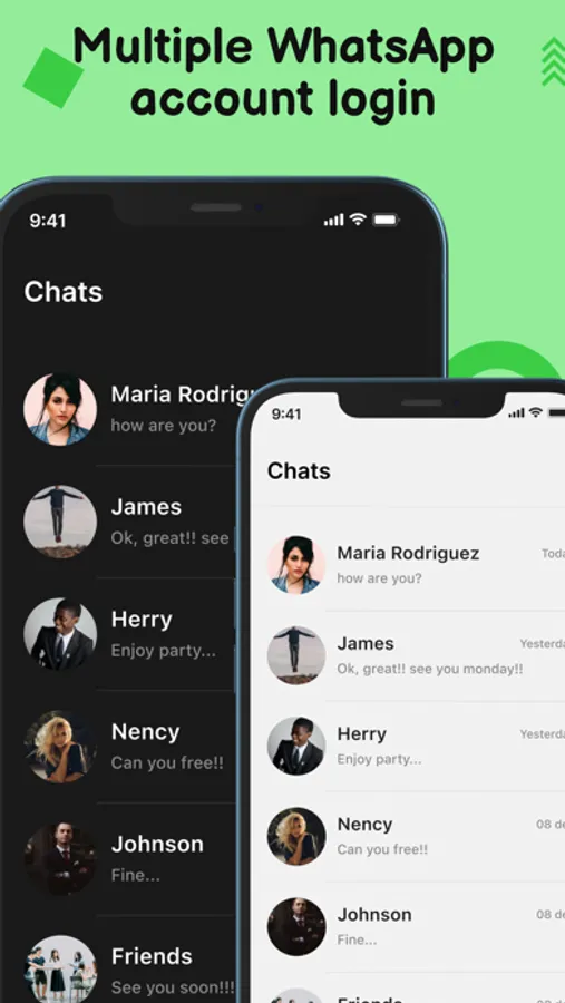 • Log in to 2 accounts, balance between users' life and work with multi-accounts easily.