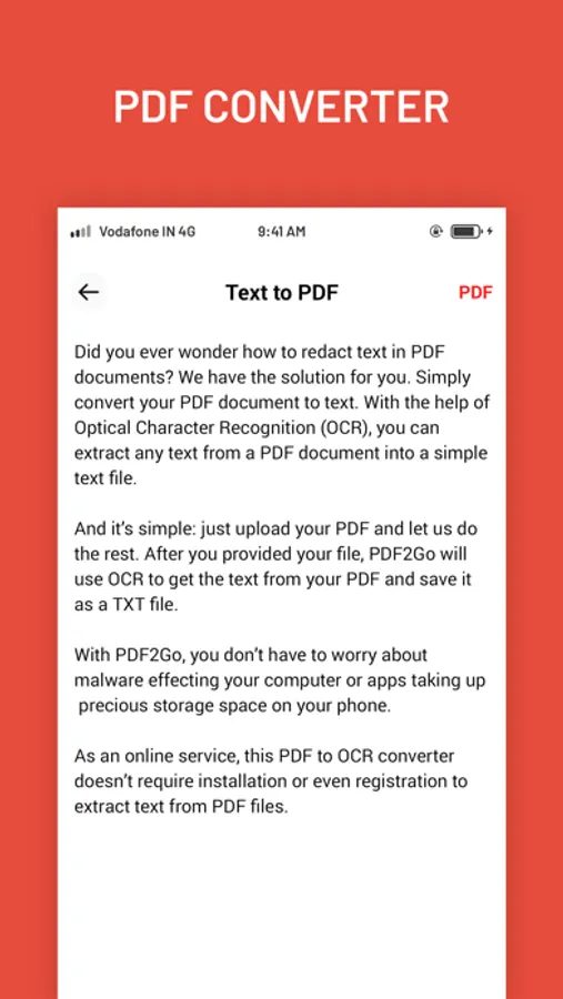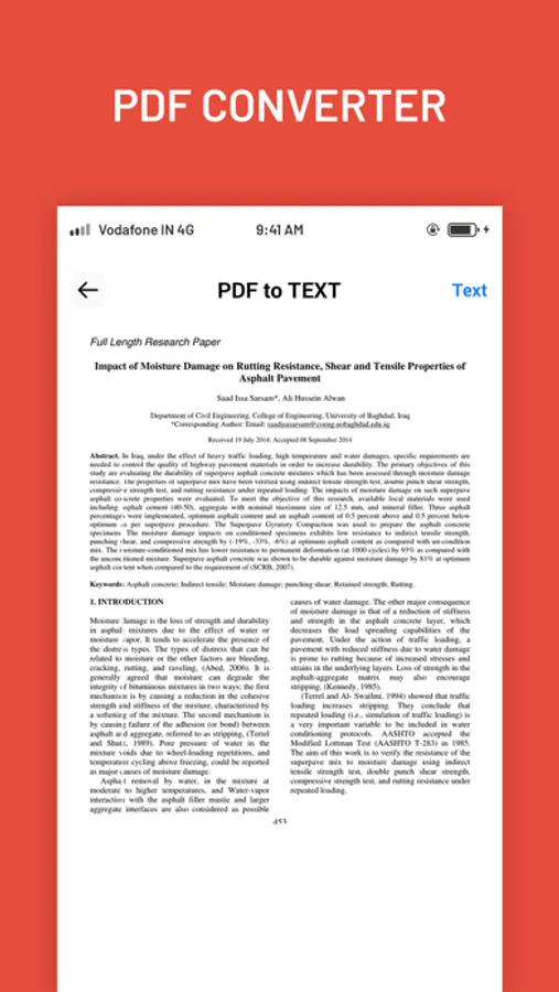 PDF To Text : Just select pdf from your iPhone device and press convert to extract text from it.