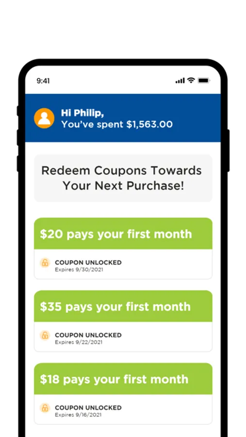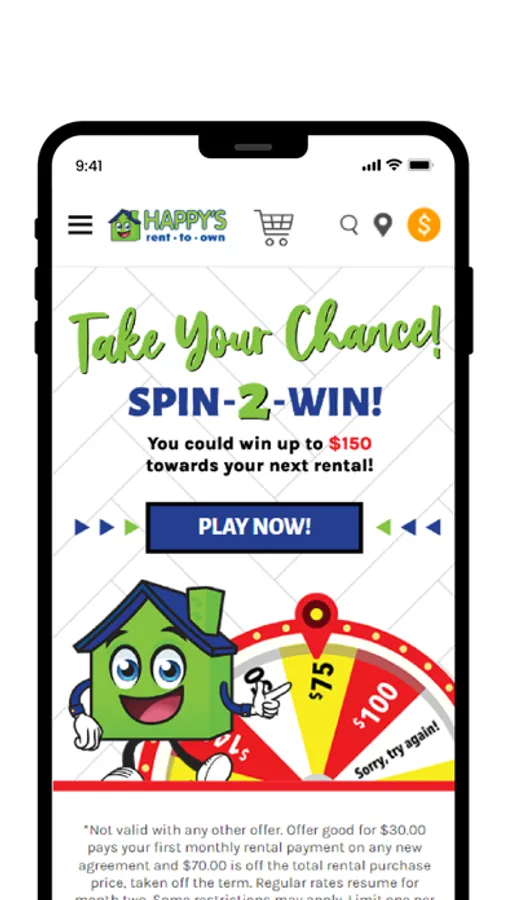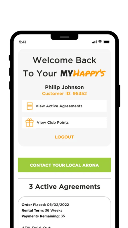 The Happys Rent To Own mobile app allows customers to manage their account , Shop products, Receive discounts, and Contact support