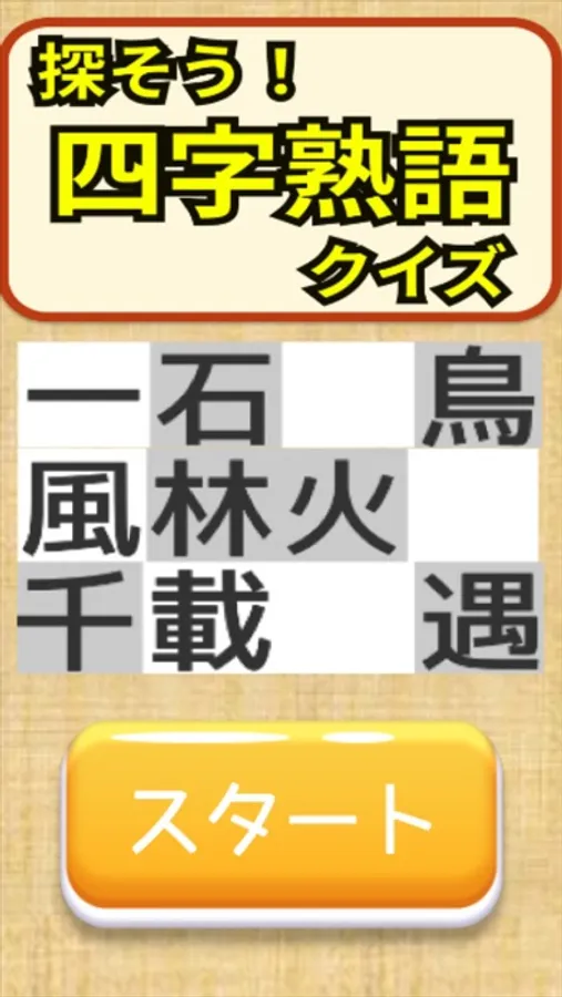 レベル1から3ではその四字熟語に関するヒントがあり、1文字探すレベル1から、4字全て探すレベル3等分かれております。