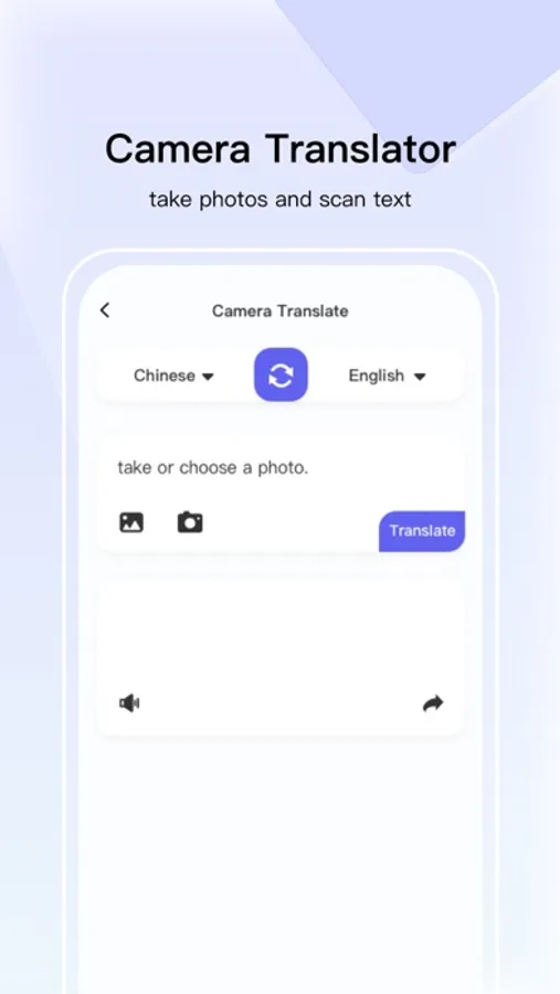 Take photos and scan text from images with your camera. Translate any paper document—menus, signage, anything—easily.