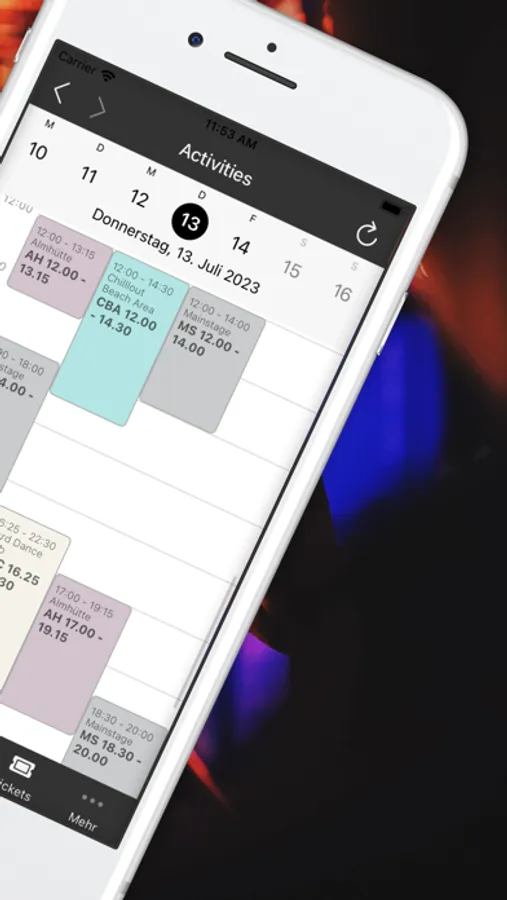 Ihr(e) Ticket(s) immer am gleichen Ort, ohne lange suchen zu müssen, weitere Tickets, Berechtigungen, Aktivitäten dazubuchen, keinen Gig / keinen Vortrag mehr versäumen und durch das Veranstaltungsprogamm, die aktuellsten Hinweise und Informationen wie Verschiebungen auch durch gezielte Push-Nachrichten erhalten, sowie jederzeit alle relevanten Informationen zu Anreise, Unterkunft und Neuigkeiten on- und offline abrufen.