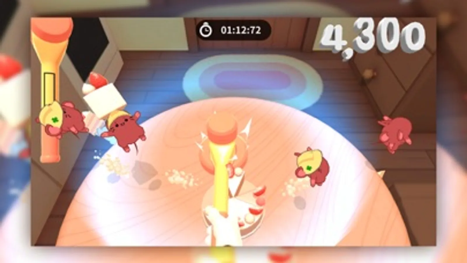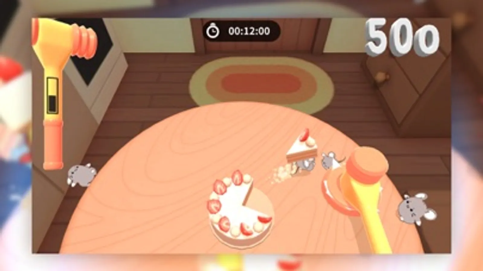 Defend the cake from attacks of various mice! All you have is only a toy hammer!