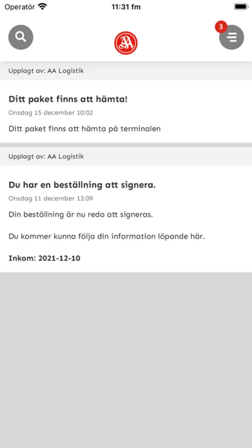 Det här är AA Logistiks-appen, din trogna följeslagare som håller dig uppdaterad och förenklar kommunikationen för kunder och medarbetare hos AA Logistik.
