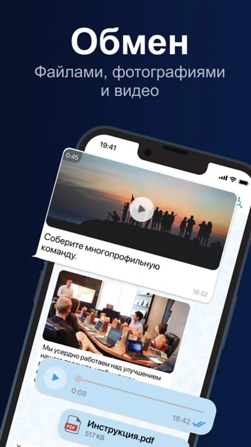 - Отправка документов, фото, видео