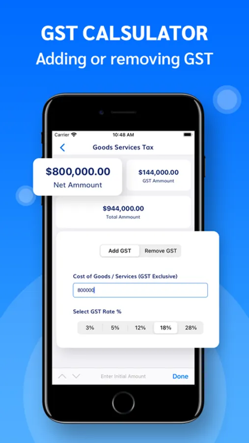 - Do the calculation of the GST on the phone itself, you do not need to carry a laptop.