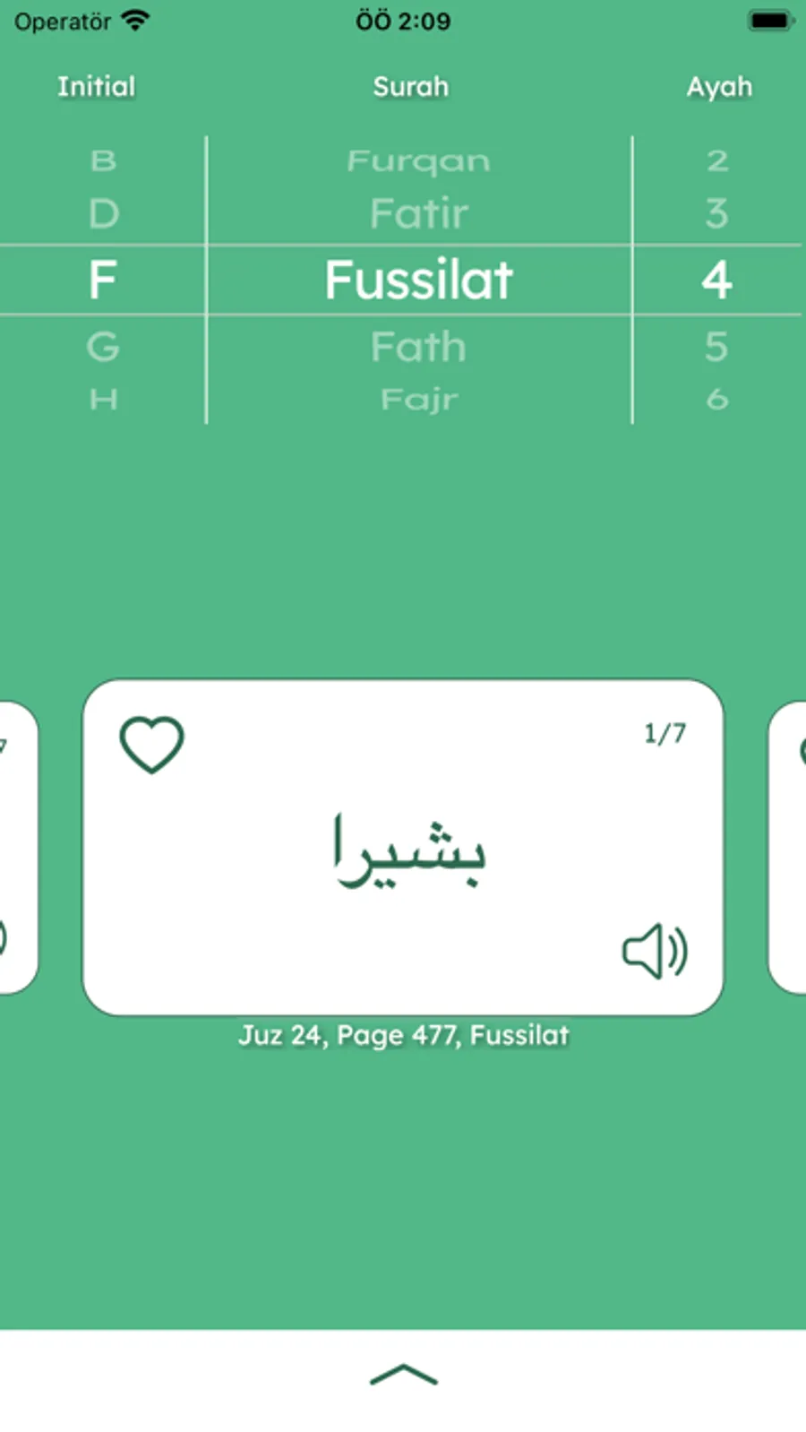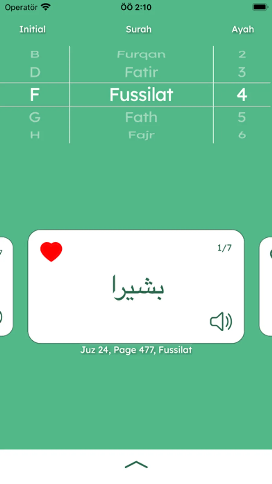 Read and learn Quran with the help of flashcards. Easy navigation through Quran surahs and ayahs. You will be able to view each word in Quran. Every word is accompanied by their translation in 6 different languages and text to speech pronunciation. You could save the words that you want to favorites.