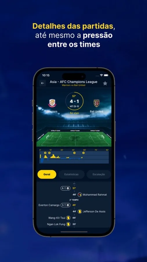 O esporte tá na palma da sua mão! Todos os detalhes das partidas, em tempo real, dos mais diversos campeonatos você só encontra aqui no Estrela Score.