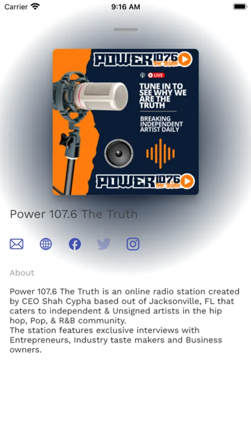 Power 107.6 The Truth is an online radio station created by CEO Shah Cypha based out of Jacksonville, FL that caters to independent & Unsigned artists in the hip hop, Pop, & R&B community.