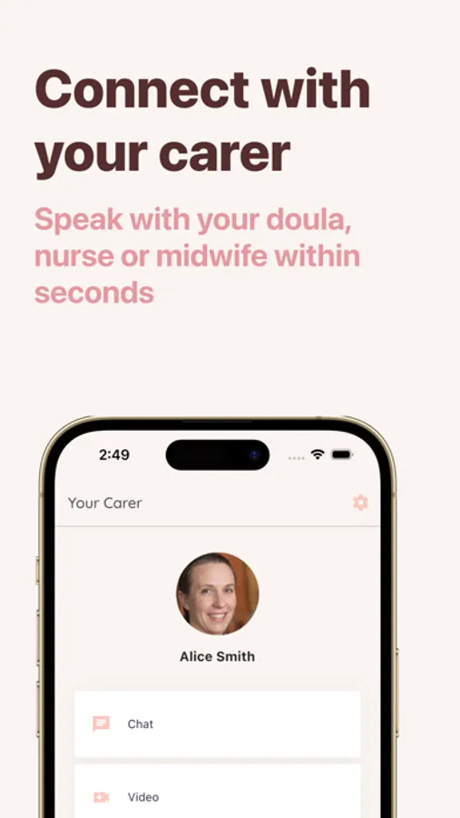 Further enhance your experience by using Velmio with your doula or midwife. Speak with your carer within seconds using chat or video, book in-person and online checkups, and keep your carer up to date about your health with our remote monitoring tools.