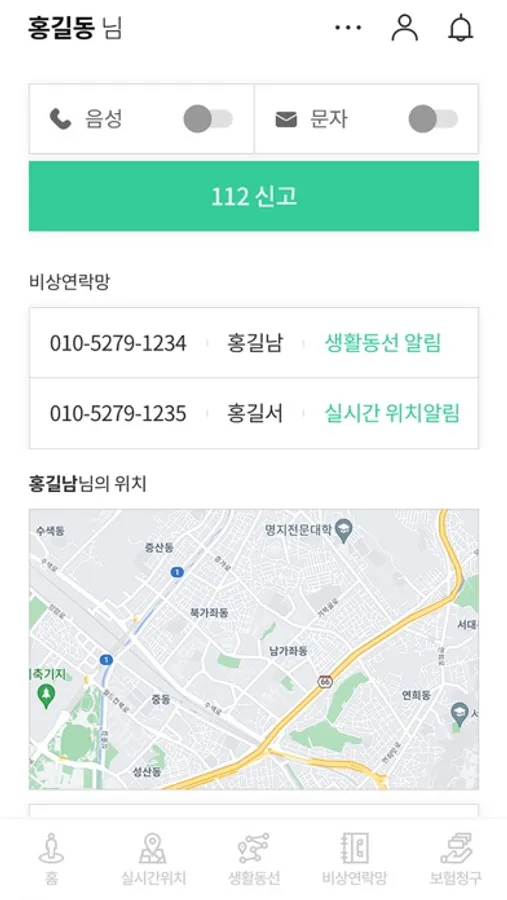 생활동선 생성하는 가족의 위치를 112센터에 전송