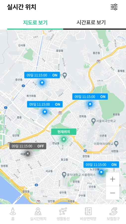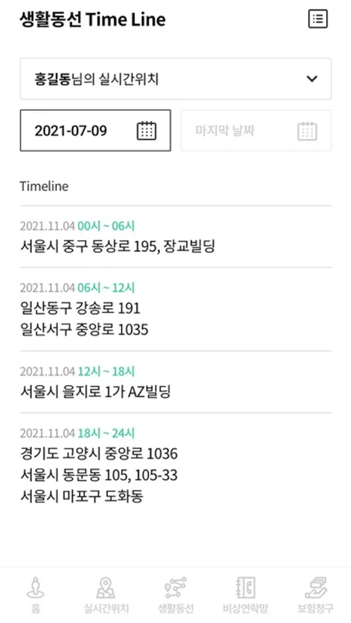 - 현재 실시간 위치, 과거 장소 위치 이력, 평소의 생활동선을 한눈에 확인